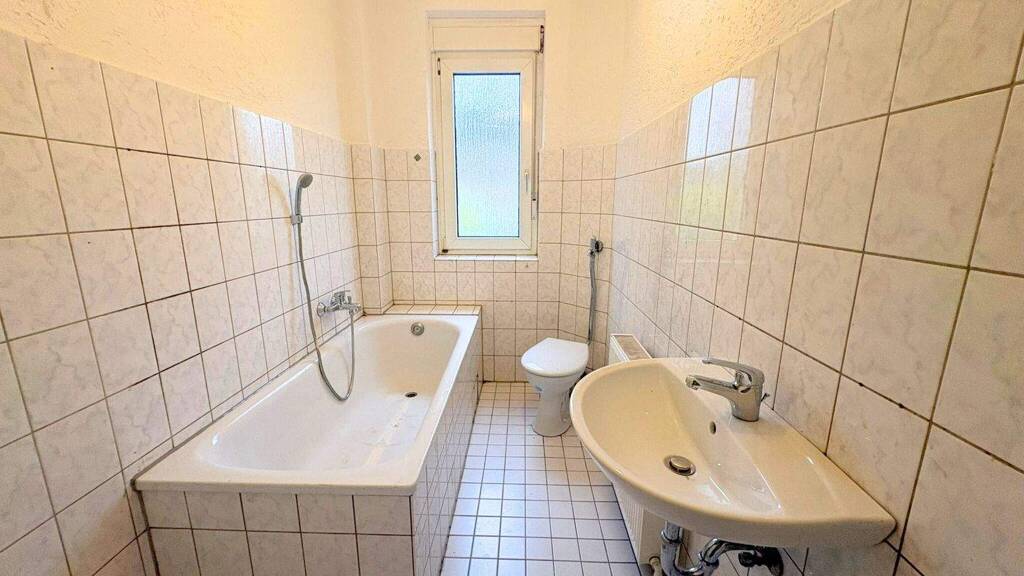 Diese praktische 2,5 Zimmer Wohnung erfüllt Ihre Wohnwünsche. Sie befindet sich im Erdgeschoss und hat eine Wohnfläche von ca. 50 qm. Die Wohnung hat ein geräumiges Wohnzimmer, eine Küche und ein Schlafzimmer. Außerdem befindet sich in der Wohnung ein hell gefliestes Badezimmer mit Badewanne und Fenster. Direkt hinter dem Haus befindet sich der Gemeinschaftsgarten.