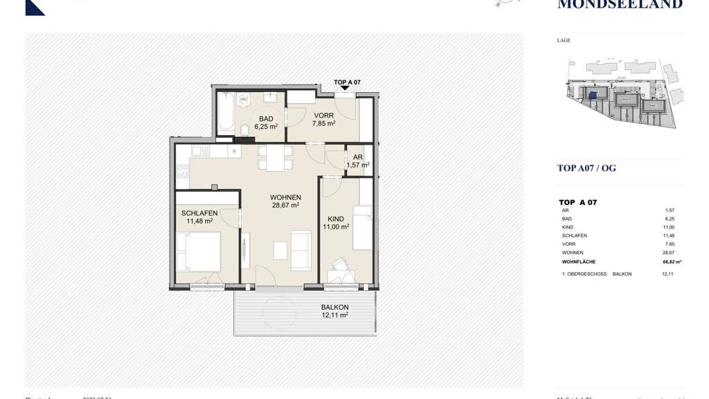 Stichworte Tiefgarage vorhanden, Fahrradraum, Nutzfläche: 74,12 m², Anzahl der Badezimmer: 1, Anzahl der separaten WCs: 1, Anzahl Balkone: 1, Balkon-Terrassen-Fläche: 12,11 m², Kellerfläche: 7,30 m², Bundesland: Oberösterreich, 3 Etagen Sonstiges: Neubaustandard