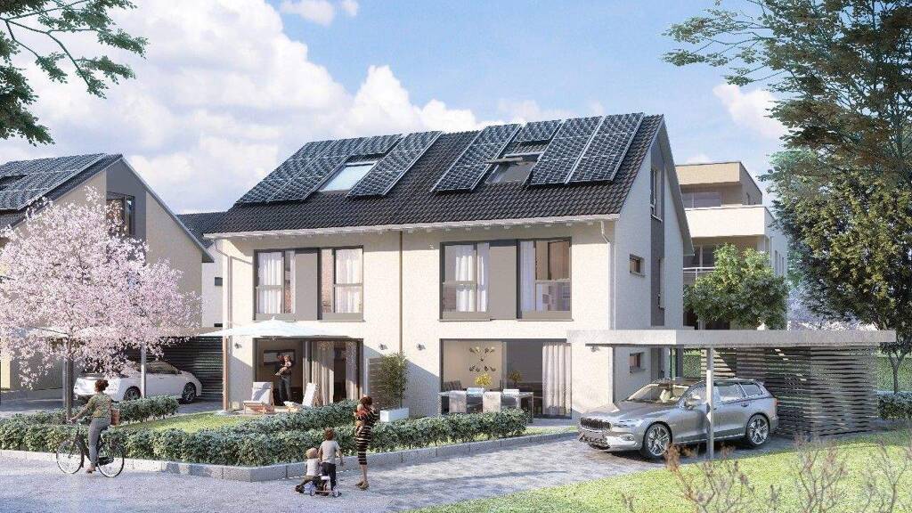 Wir bauen für Sie individuell, innovativ und wertschöpfend. Die Wohnhäuser werden gemäß der GEG 2023 in Massivbauweise erstellt. Sie verfügen über eine 3-fach Wärmeschutzverglasung sowie über eine Photovoltaikanlage auf dem Dach. Zudem erfolgt die Heizungsversorgung über das Nahwärmenetz der SÜWAG Grüne Energien und Wasser AG und Co. KG.