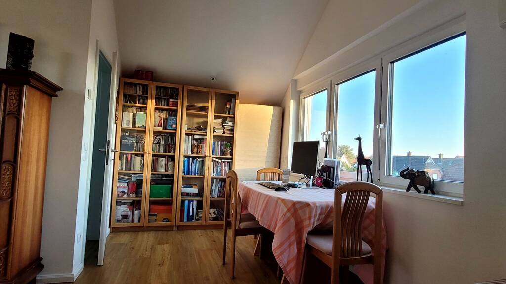 Das Dachgeschoss ist vielseitig einsetzbar, etwa für den Homeoffice Bereich, Spielzimmer, Gästezimmer oder Kinderzimmer. Das halbe Zimmer, dient gut als Abstell/ Lagerfläche.