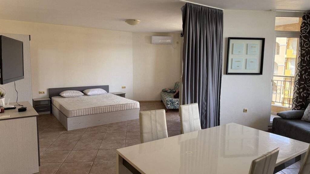 Wir bieten Ihnen ein großzügiges Studio mit herrlichem Meerblick im beliebten Midia Resort in Aheloy, Bulgarien, zum Verkauf an. Die Wohnung überzeugt durch ihre funktionale Raumaufteilung, die direkte Nähe zum Meer sowie den hohen Erholungswert der Anlage.