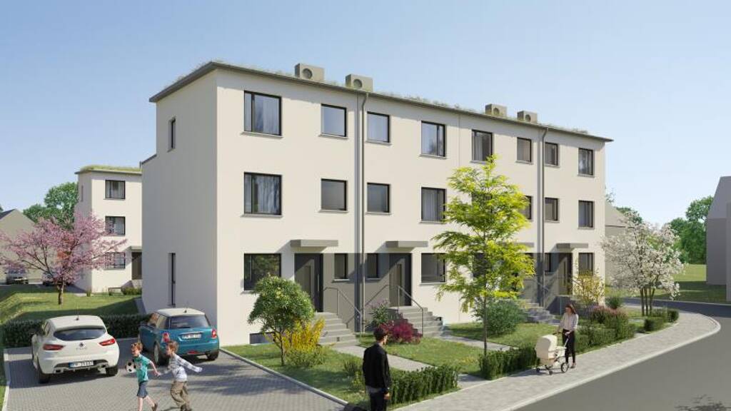 Das dreistöckige Reihenmittelhaus zeichnet sich durch eine gehobene Innenausstattung aus - Erstbezug im Jahr 2025. Im Erdgeschoss der Immobilie befindet sich das grosszügige Wohn-/Esszimmer, offene Küche, Zugang zur Terrasse mit Gartengrundstück, Gäste-WC sowie der einladende Eingangsbereich. Das Obergeschoss umfasst drei Schlafzimmer, Flur und Bad mit Badewanne, Dusche und WC. Im Dachgeschoss entsteht ein großes Dachstudio mit Technikraum sowie Dachterrasse. Das Kellergeschoss rundet mit ca. 43 m³ Nutzfläche Ihre Wohnträume ab. Das Objekt wird per Luft-Wasser-Wärmepumpe umweltfreundlich beheizt. Auch das dazugehörige Grundstück lässt keine Wünsche offen. Ob Blumenstauden, Hochbeete für die Gemüsezucht oder Platz für die Kinder zum Spielen.
