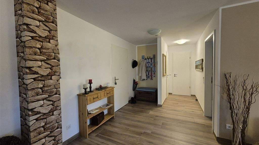 Die Wohnung verfügt über ein komfortables Schlafzimmer sowie ein weiteres Zimmer, das flexibel als Arbeits-, Gäste- oder Kinderzimmer genutzt werden kann. Das hochwertig ausgestattete Tageslichtbad überzeugt durch seine zeitlose Gestaltung und ist mit Badewanne und Dusche ausgestattet. Ergänzt wird das Raumangebot durch ein separates Gäste-WC, einen Hauswirtschaftsraum sowie weitere praktische Abstellflächen. Elektrische Rollläden sorgen in allen Räumen für zusätzlichen Komfort und Privatsphäre.