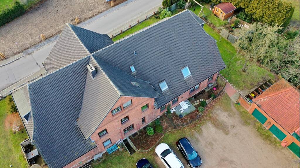 Highlights - Baujahr: 1905, roter Klinker - Laufend modernisiert/renoviert - Gesamtwohnfläche: ca. 595 m² (6 Wohnungen) - Grundstücksfläche: 2.783 m² - Ausbaureserve im 2. OG: ca. 100-110 m² (zu ca. 3/4 fertig) - Garagen/Stellplätze: 5 Garagen + ca. 20 weitere Stellplätze - Außennutzung: Baumschonung für Weihnachtsbäume - Vermietungsstand: Alle sechs Wohnungen und alle Garagen dauerhaft vermietet - stabile Mieterträge