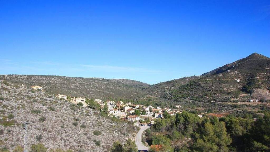 Bauprojekt für ein Chalet modern-minimalistischen Designs in Alcalalí. Es befindet sich auf einer Parzelle mit 1000 m² mit Südlage und unglaublichem Blick aufs Jalón-Tal. Das Chalet hat zwei Stockwerke mit insgesamt 225 m². Das Obergeschoss besteht aus Eingangsbereich, drei Schlafzimmern, ein jedes mit Bad en suite und Einbauschrank, außer dem Hauptschlafzimmer, das über einen Ankleideraum verfügt. Von zwei dieser Zimmer aus hat man Zugang zu einer 30-m²-Terrasse mit Glasgeländer. Von diesem Stockwerk aus kommt man über eine Innentreppe zum Hauptgeschoss, das aus Wohnzimmer mit Kamin, Esszimmer, offener Küche, Abstellraum, Toilette und einem Schlafzimmer mit Einbauschrank und Bad en suite besteht. Insgesamt hat das Haus 4 Schlafzimmer, ein jedes mit Bad en suite. Von diesem Stockwerk aus kommt man auf eine teilweise überdachte Terrasse von 60 m², auf der sich ein 8×4-m-Infinity-Pool mit Strahlern und gemauerter Innentreppe befindet; daneben eine Relax-Zone mit einer gemauerten Bank mit einem Tisch, wie es aus der Perspektivdarstellung ersichtlich ist. Zur Anpassung ans Gelände nötige Erhöhungs- und Aushubarbeiten sind im Preis enthalten wie auch ein Parkplatz aus Beton auf Straßenhöhe, eine 60-cm-Steinmauer an der Straßenseite mit Zufahrtstor und Zugangstür von der Straße und eine Treppe von der Straße bis zum Hauseingang hinauf. Hohe Bauqualität. Baugenehmigung und Architektenentwurf sind im Preis enthalten. Der Kunde kann die Pläne, die Bauqualität oder -materialien abändern. Die Parzelle bietet einen herrlichen Blick über das Jalón-Tal. Alcalalí ist ein hübsches Dorf im Herzen des Jalón-Tals, sehr typisch für die Region, mit guten Anbindungen und allen Dienstleistungsangeboten wie Arztzentrum, Apotheke, Schule, verschiedene Restaurant etc. Nur 20 Minuten von den Stränden und Buchten der Küstenzone von Benisa und Calpe entfernt, 15 Minuten vom Anschluss zur Autobahn AP7 und ungefähr 1 Stunde vom internationalen Flughafen Alicante.