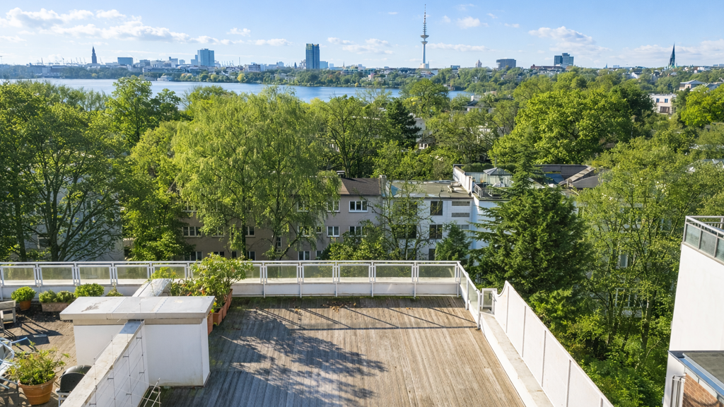 Secret Sale: Penthouse in Uhlenhorst: Große Terrasse mit Alsterblick über den Dächern Hamburgs