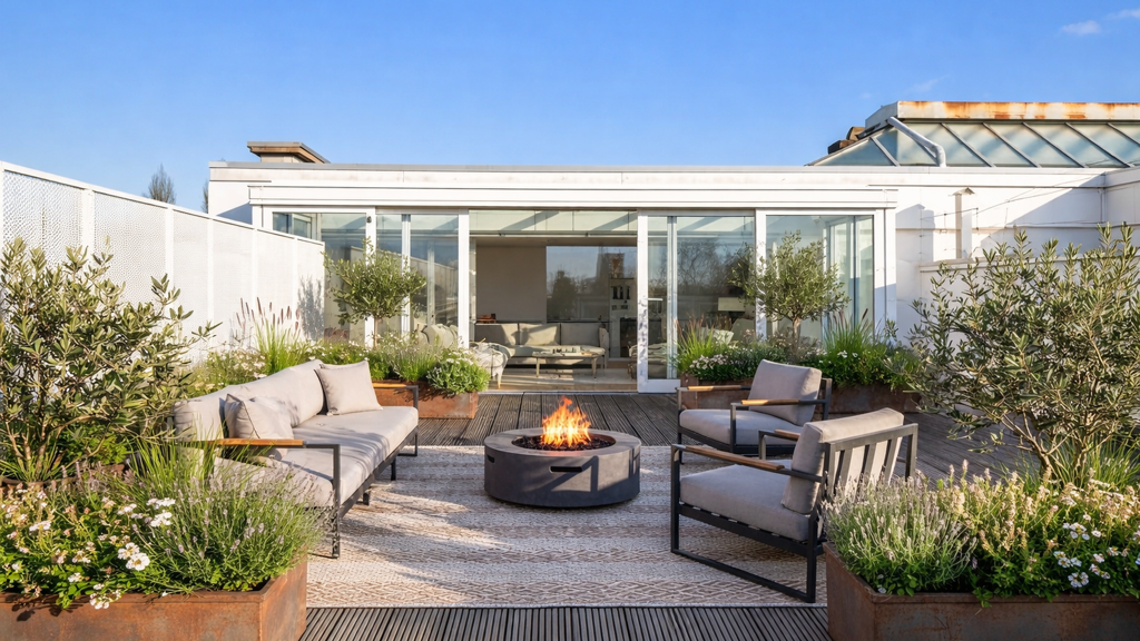 Besonders beeindruckend ist die enorme Dachterrasse im 5. Obergeschoss mit Südwest-Ausrichtung, großflächigen Sonnenbereichen und einem unvergleichlichen Blick über die Dächer der Uhlenhorst bis zur Alster. Ergänzt wird das Außenflächenangebot durch einen großen Balkon sowie einen französischen Balkon, die den Wohnraum harmonisch erweitern und zu jeder Tageszeit besondere Lichtmomente bieten.