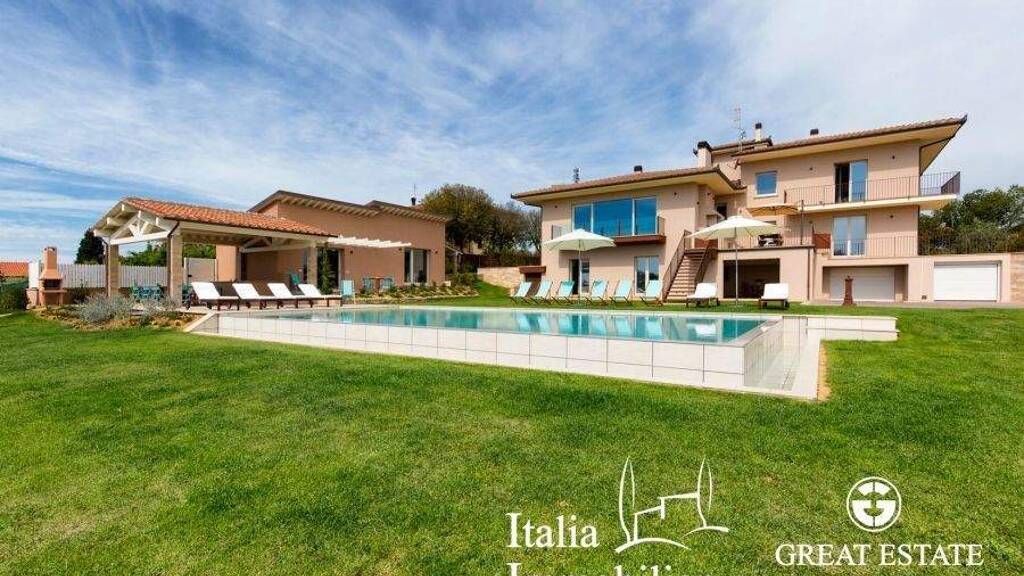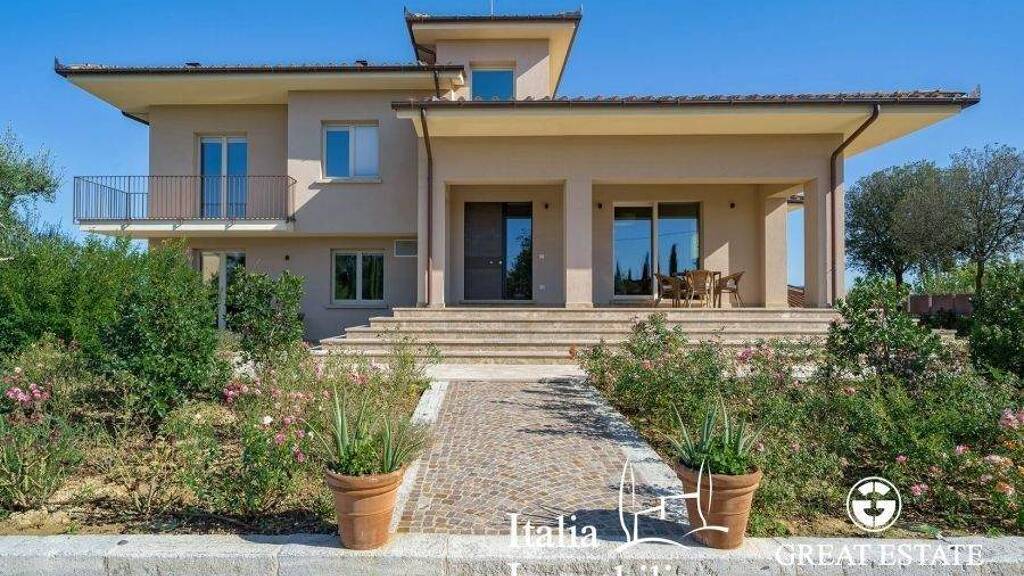 Zum Verkauf stehende Luxusvilla, ausgestattet mit allen modernen Annehmlichkeiten in der Landschaft von Arezzo, Toskana. Die Villa hat eine Fläche von 465 Quadratmetern, mit insgesamt 7 Schlafzimmern, 10 Badezimmern, 50.000 Quadratmetern Land mit Olivenhainen und schönen Zierpflanzen. Das Anwesen besteht aus einer Hauptvilla und einem Nebengebäude. Die Villa (465 qm) ist auf 3 Ebenen verteilt: Das Untergeschoss besteht aus einem Sonnenbereich, einem Wohn-/Esszimmer, einer großen Küche, einem Badezimmer, zwei Schlafzimmern mit eigenem Bad, einer Waschküche, einem Fitnessraum, einem Hauswirtschaftsraum und einer Garage.