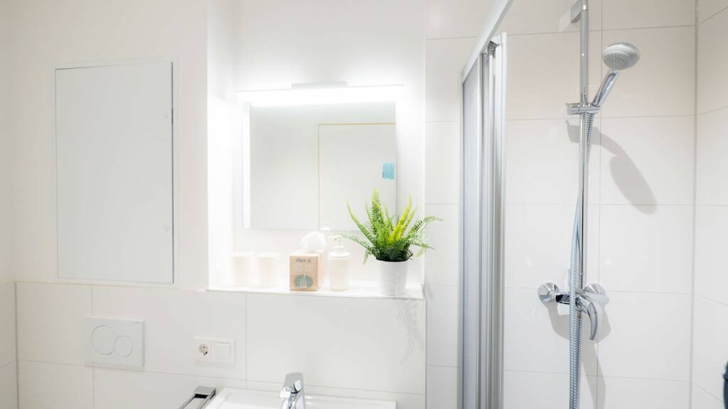 In addition to the new, functional shower room, the apartment has a small entrance area with a cloakroom. Due to the inner courtyard, the apartment is very quiet!