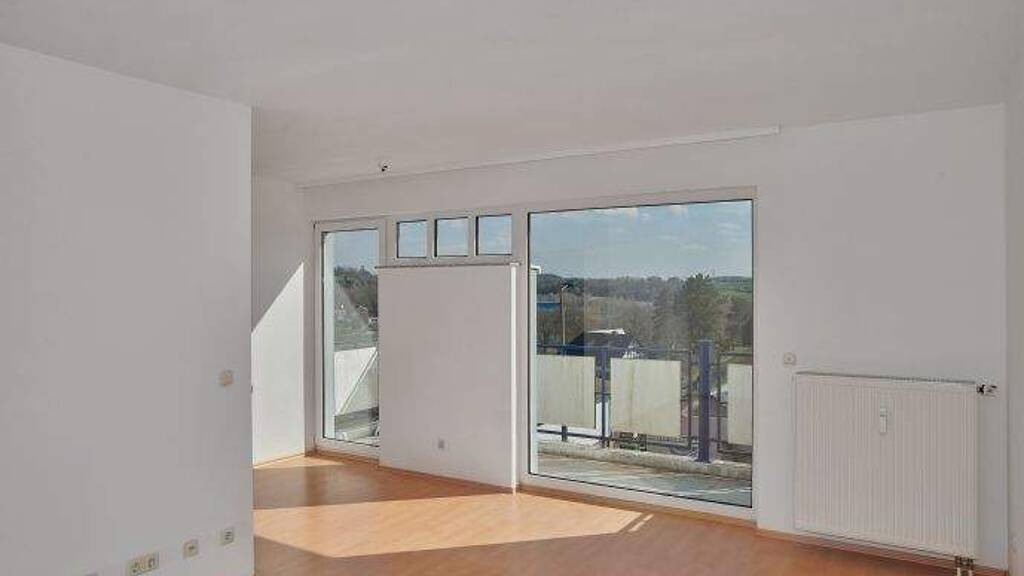 Die Ausstattung des Appartements ist hell und modern. Die Diele bietet reichlich Raum für Garderobe und anderen Stauraum. Von hier gelangt man linker Hand in das Badezimmer, welches unlängst saniert wurde. Die hochwertigen Fliesen runden das moderne Erscheinungsbild ab. Das Badezimmer verfügt über eine Badewanne und einen Waschmaschinenanschluss. Der Flur führt außerdem direkt in den hellen Wohn-/Schlafbereich. Hier befindet sich eine offene Küche. Durch die Fenster zum Balkon ist der Wohnraum lichtdurchflutet und bietet mit dem Weitblick über Colditz eine wunderschöne Kulisse für eine gemütliche Auszeit nach Feierabend. Der durchgehend helle Laminat Bodenbelag verstärkt diesen wohnlichen Eindruck noch.