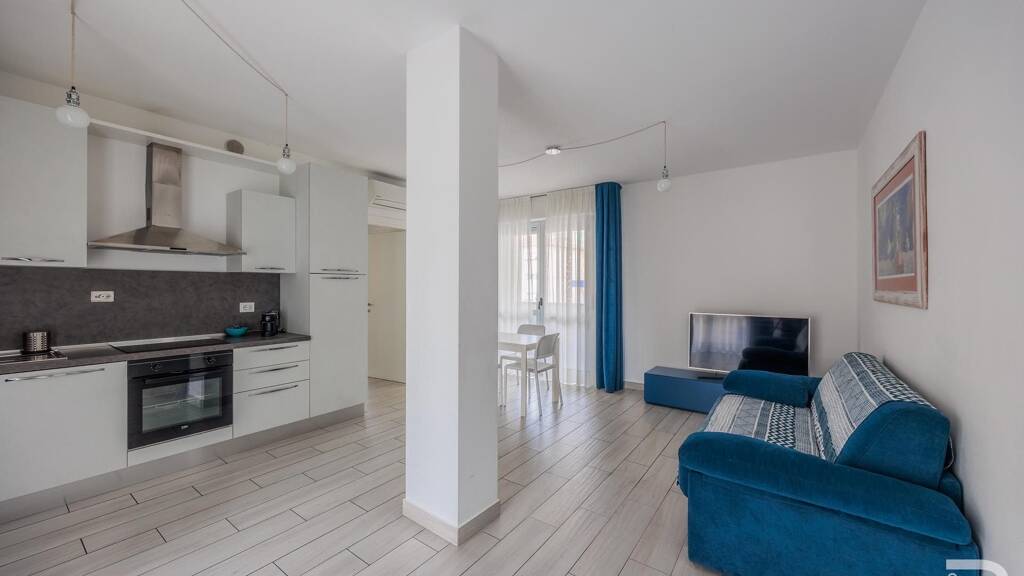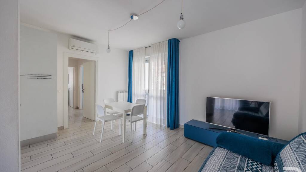 Die erste Wohnung, platziert auf dem 1. Stock des Gebäudes, begrüßt Sie mit einem offenen und lebendigen Raumkonzept, welches durch großzügige Fenster sehr hell gestaltet ist. Das besondere Highlight dieser Wohnung ist ihre geräumige Terrasse sowie ein einladender Balkon. Beide sind nicht nur perfekt zum Entspannen nach einem langen Tag, sondern bieten zudem genügend Platz für gemütliche Grillabende mit Freunden oder Familie. Die zweite Wohnung hingegen befindet sich höher gelegen, im 5. Stock, und bietet somit einen atemberaubenden Ausblick, der Sie jeden Morgen aufs Neue begeistern wird. Die Wohnung verfügt nämlich über eine großzügige Dachterrasse, von der aus Sie nicht nur auf das schimmernde Meer, sondern auch auf die malerischen Berge blicken können. Sie werden es lieben, hier die ersten Sonnenstrahlen mit einer Tasse Kaffee begrüßen zu können oder den Abend bei einem Glas Wein und dem romantischen Blick auf die untergehende Sonne hinter den Bergen ausklingen zu lassen. Große Fenster durchfluten die Räume mit Tageslicht und sorgen für eine stimmungsvolle und angenehme Atmosphäre.