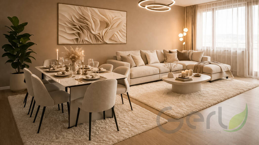 Hinweis: Die abgebildeten Fotos zeigen ein Einrichtungsbeispiel, um Ihnen einen Eindruck von den Gestaltungsmöglichkeiten der Räume zu vermitteln. Die Wohnung wird jedoch unmöbliert verkauft - so haben Sie die Freiheit, Ihr neues Zuhause ganz nach Ihren eigenen Vorstellungen zu gestalten.