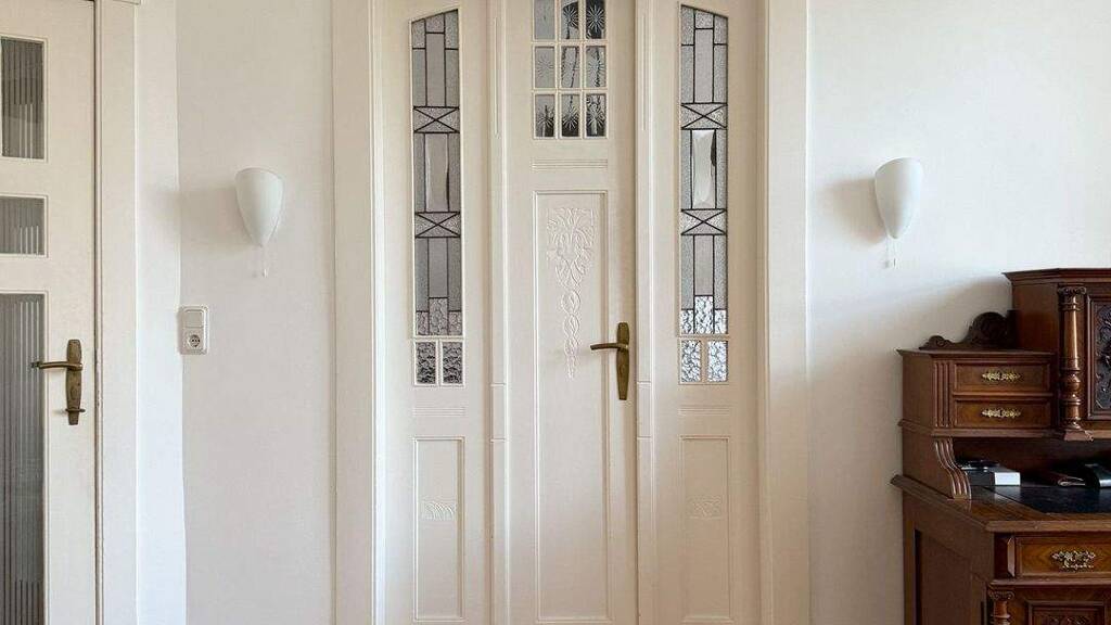 Die Eigentumswohnung befindet sich in einer Stadtvilla, die ca. 1913 erbaut wurde und den typischen Altbau-Charakter aufweist. Sie liegt in der Beletage und umfasst ca. 135 m² Wohnfläche, verteilt auf vier großzügige Zimmer. Die Wohnung zeichnet sich durch hohe Stuckdecken und Parkett im Fischgrätenmuster aus.