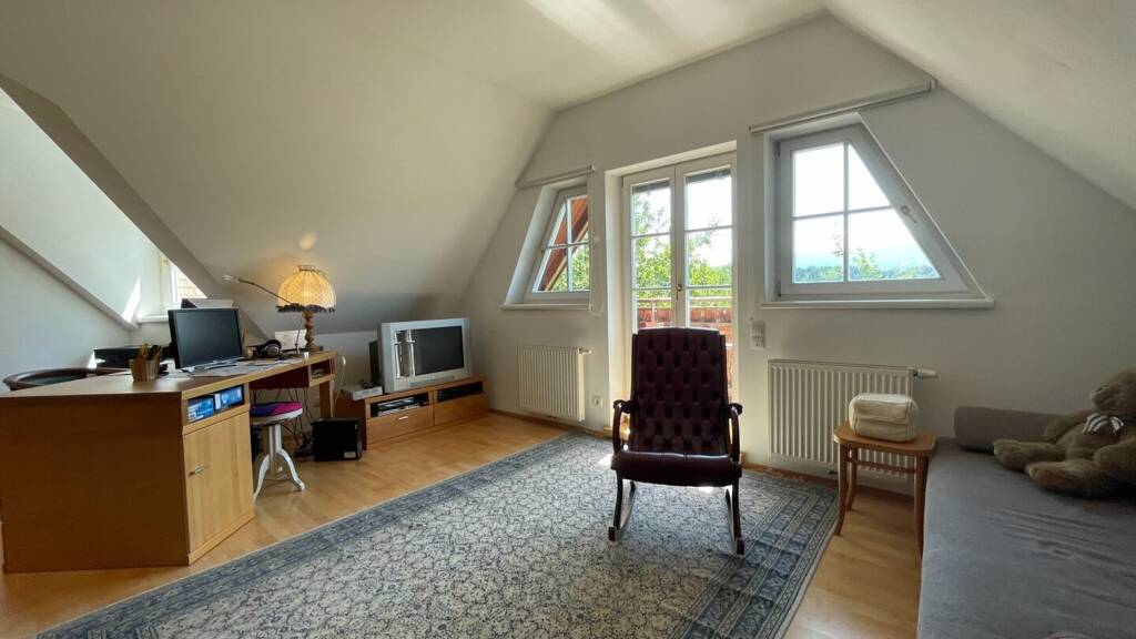 Die Wohnfläche verteilt sich auf sechs helle Zimmer, zwei Bäder und einen durchdachten Grundriss - ideal für Familien oder alle, die großzügiges Wohnen schätzen. Sowohl im Erd- als auch im Dachgeschoss befinden sich Badezimmer und WC. Die Beheizung erfolgt seit ca. 2000 mit Pellets, alternativ ist auch Stückholz möglich. Eine Solaranlage unterstützt die Warmwasserbereitung, Fußbodenheizung sorgt im DG für zusätzlichen Komfort.