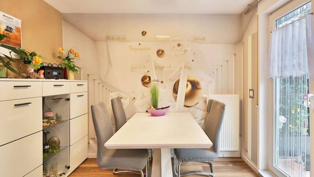 Dieses gepflegte Reihenmittelhaus aus dem Jahr 2004 überzeugt mit einer durchdachten Raumaufteilung auf rund 103 m² Wohnfläche und 4,5 Zimmern, verteilt über drei Etagen. Das ca. 133 m² große Grundstück bietet genügend Platz für angenehmes Wohnen und einen gemütlichen Außenbereich. Im Erdgeschoss befinden sich ein Duschbad, ein aktuell als Hobbyraum genutztes Zimmer, ein Kellerraum sowie die praktische Waschküche. Das erste Obergeschoss bildet den zentralen Lebensmittelpunkt: Die großzügige Küche mit integriertem Essbereich lädt zu geselligen Mahlzeiten ein und bietet direkten Zugang zur Terrasse, die in den Sommermonaten zum Entspannen und Verweilen einlädt. Ein weiterer Wohnraum, derzeit als zusätzlicher Essbereich genutzt, gewährt Zugang zum Balkon. Auf dieser Ebene steht zudem ein weiteres Duschbad zur Verfügung. Im Dachgeschoss befinden sich das geräumige Schlafzimmer, ein aktuell als Wohnzimmer genutztes großes Zimmer sowie ein Badezimmer mit Badewanne. Eine Garage rundet dieses attraktive Angebot ab. Das Haus befindet sich in einem sehr gepflegten Zustand und eignet sich ideal für Paare oder kleine Familien, die ein gemütliches Zuhause mit vielseitigen Nutzungsmöglichkeiten suchen.