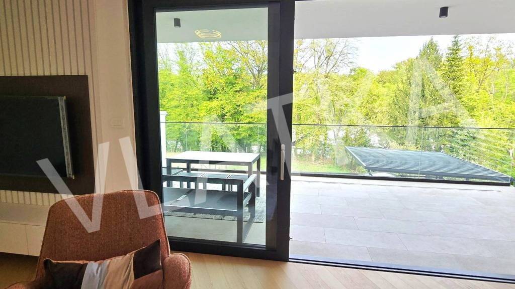 Sie besteht aus: . Eingangsbereich . Geräumigem Wohnzimmer, das mit einer Designer-Küche und einem Essbereich verbunden ist . Master-Schlafzimmer mit eigenem Badezimmer (en-suite) . Zweitem Schlafzimmer (ideal als Kinderzimmer oder Büro) . Gäste-WC . Wunderschöner überdachter Terrasse (23 m2) mit Blick auf den Maksimir-Wald