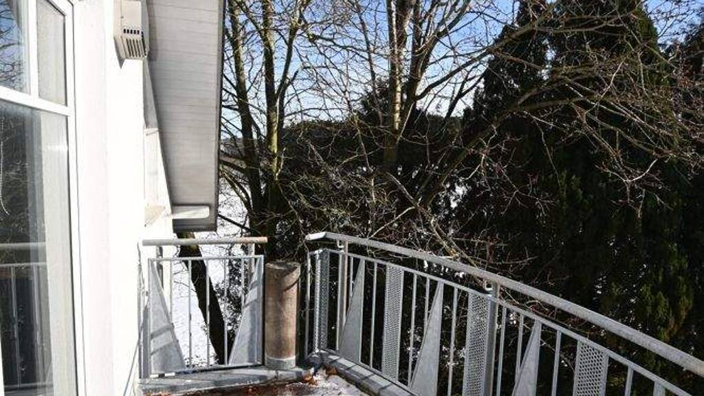 Vom Wohnzimmer sowie vom Schlafzimmer aus besteht Zugang zu einem Rundbalkon. Der Balkon ist aktuell ohne Bodenbelag, zudem ist die Oberflächenentwässerung herzustellen.