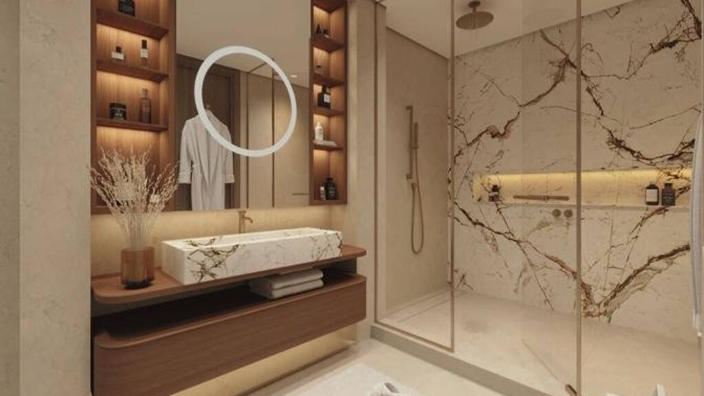 AUSSTATTUNG - 50 m großer Olympic-Pool mit Sonnenliegen, Cabanas und Baja-Shelf - privater Strandzugang mit Cabanas - Erfrischungsbereich im Freien - schattiges Kinderbecken mit Kinderspielplätzen im Freien - Grill- und Speisemöglichkeiten - Fitnessbereich im Innen- und Außenbereich mit Trainingsbereichen und einem urbanen Fitnessbaum - Umkleide-, Dampf- und Saunaräume im Spa-Stil mit Hydrotherapie-Pool - Paddle-Tennisplatz, städtischer Basketballplatz und ein Boccia-Platz - Spieltischbereich im Freien - Aussichtsterrasse mit Blick auf den Arabischen Golf.