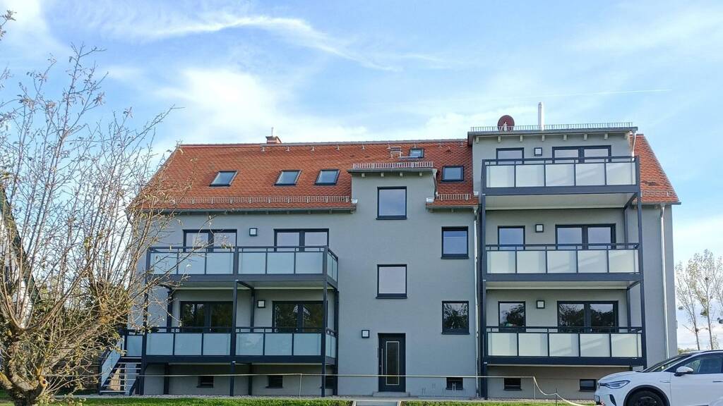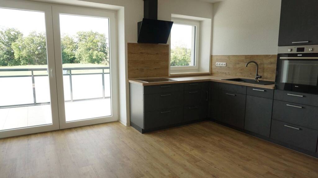Besondere Ausstattungsmerkmale sind: . Einbauküche mit Kühlschrank und Gefrierfach . Tageslichtbad mit Badewanne und Waschmaschinenanschluss . Schneller Internetzugang per Glasfaser (ist in Arbeit) . Pflegeleichter, hochwertiger Designbodenbelag in den Wohnräumen, Fließen im Bad . die Wohnung verfügt über eine sehr große Terrasse, direkt im Grünen . 1 PKW-Stellplatz (gegen Gebühr), bei Bedarf mit Ladestation für E-Autos . Pro Wohnung steht ein großer Kellerraum zur Verfügung . Fahrrad/Kinderwagenraum . für eine besondere Atmosphäre sorgt in jeder Wohnung ein Kamin . der Garten mit Sitzecke, Grill, Sandkasten und Hochbeeten (jede Wohnung verfügt über ein eigenes Hochbeet zur individuellen Nutzung) kann von allen Mietern genutzt werden