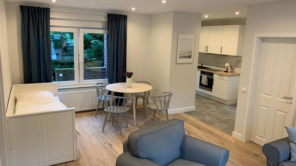 Die Räumlichkeiten bestechen durch lichtdurchflutete Räume sowie hochwertige Materialien und eine geschmackvolle Einrichtung. Die neue Küche ist mit einem Geschirrspüler, einem Kühlschrank mit Gefrierfach, Herd plus Induktionskochfeld sowie einer Nespressomaschine bestückt. Kochutensilien, Besteck und Geschirr stehen ebenfalls zur Verfügung. Sämtliche Räume weisen einen hochwertigen Eichedieleboden auf. Das Badezimmer mit ebenerdiger Dusche mit Glaswand ist mit großformatigen Fliesen ausgestattet.