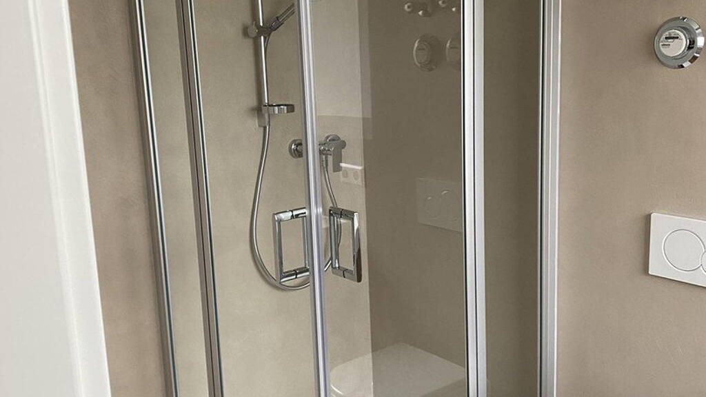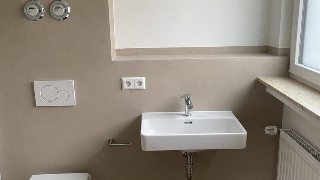 Das Badezimmer wurde ebenfalls vollständig erneuert und wurde modern im fugenlosen Design - pflegeleicht und stilvoll zugleich - gestaltet. Es verfügt über Tageslicht und ein Fenster.