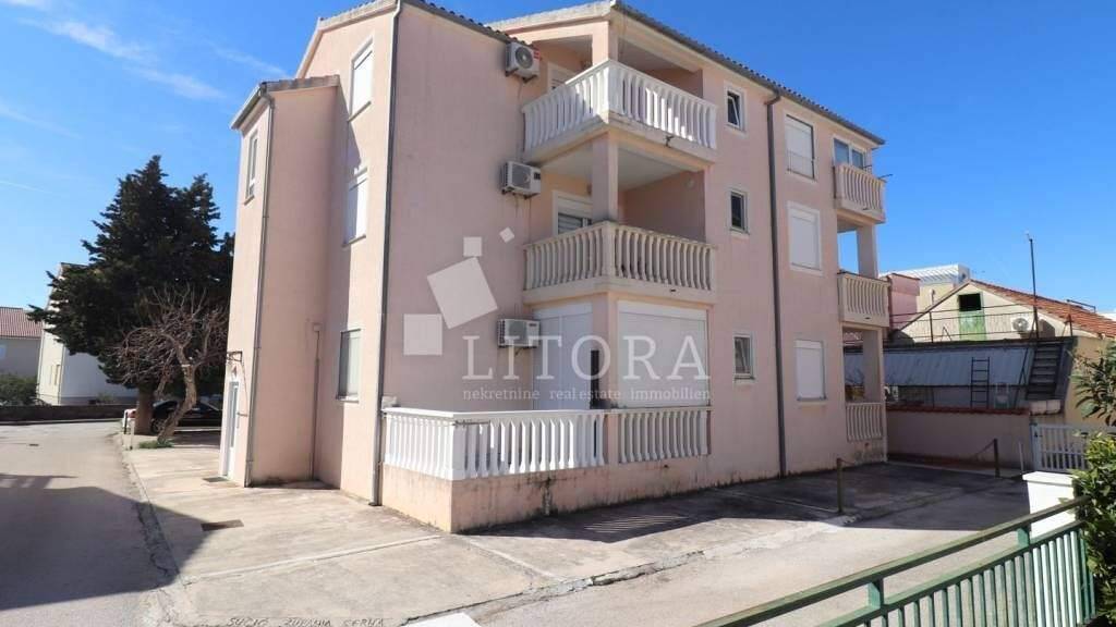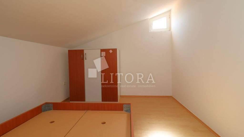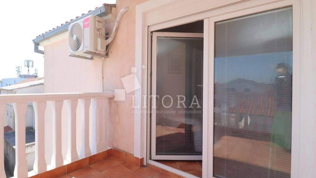 Vodice - 550 m vom Strand entfernt, möblierte zweistöckige Zweizimmerwohnung mit Terrasse. Die Wohnung befindet sich in der obersten Etage - im hohen Dachgeschoss mit Galerie im Dachraum und hat eine Nutzfläche von 56,76 m². Sie ist nach Osten ausgerichtet und befindet sich in einem Mehrfamilienhaus. Sie besteht aus einer Küche mit Essbereich und Wohnzimmer, einem Badezimmer sowie einem Schlafzimmer. Über dem Wohnzimmer befindet sich eine Galerie, die als zusätzliches Schlafzimmer genutzt wird. Das Wohnzimmer hat Zugang zu einer überdachten, nach Osten ausgerichteten Terrasse. Die Wohnung ist vollständig möbliert, und die Möbel sind im Preis inbegriffen. Sie ist mit einer Klimaanlage ausgestattet. Es besteht die Möglichkeit, im Hof des Gebäudes zu parken, jedoch sind die Parkplätze nicht im Eigentum aufgeteilt. Die Entfernung zum Strand beträgt 550 m und zum Ortszentrum 1.000 m. Das Gebäude hat keine Nutzungsgenehmigung; ein Antrag auf Legalisierung wurde beim zuständigen Stadtplanungsamt eingereicht.