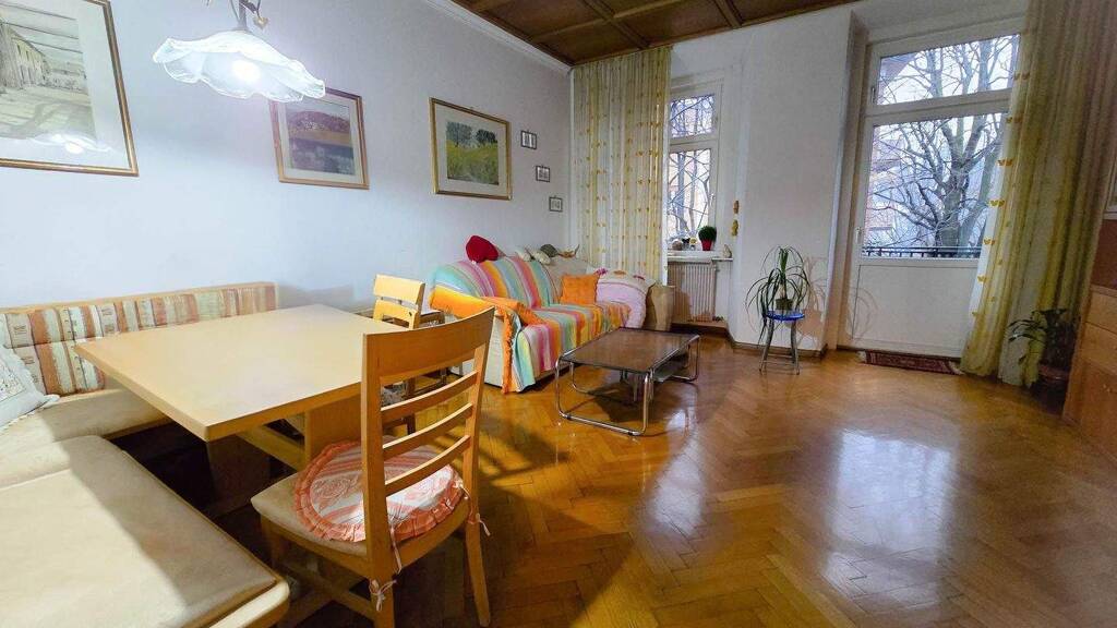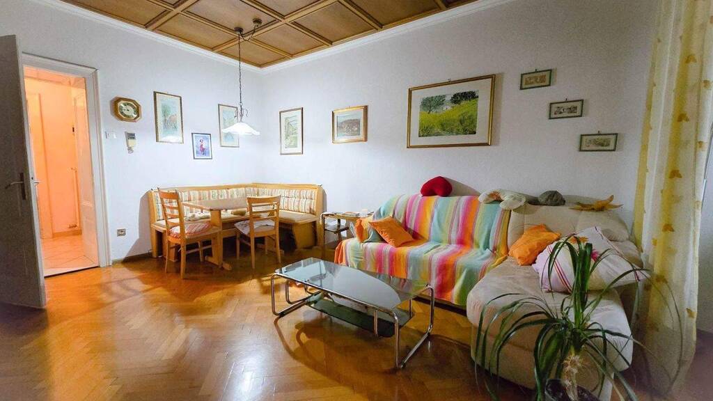 Die Raumaufteilung umfasst ein Wohnzimmer, eine Küche und zwei Schlafzimmer und bietet daher eine klassische, gut nutzbare Raumaufteilung. Dank des vorteilhaften Grundrisses besteht zudem die Möglichkeit, die Wohnung in eine 4-Zimmer-Wohnung umzuwandeln und dadurch zusätzlichen Wohnraum zu schaffen. Zwei Balkone sorgen für angenehme Lichtverhältnisse und erweitern den Wohnraum nach außen. Beheizt wird die Immobilie über eine autonome Gasheizung, wodurch eine individuelle Regulierung der Heizkosten möglich ist. Ein Keller sowie ein Dachboden sind im Angebot inbegriffen und bieten zusätzlichen Stauraum.