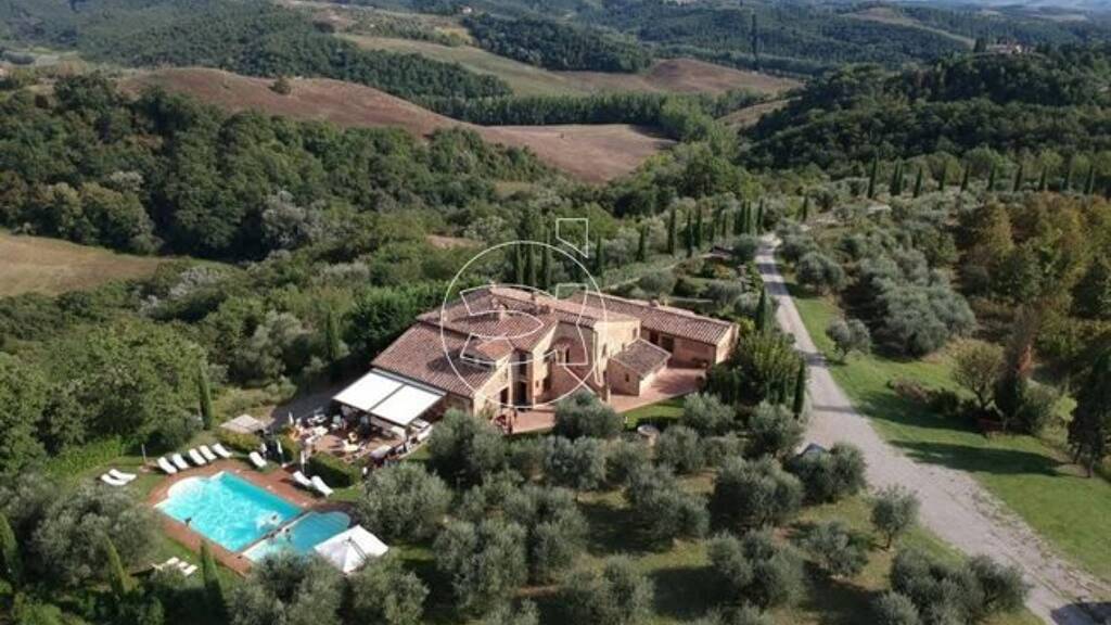 In der Provinz Siena, im Herzen der Crete Senesi, steht dieses außergewöhnliche alte Anwesen mit Schwimmbad und Nebengebäude.
