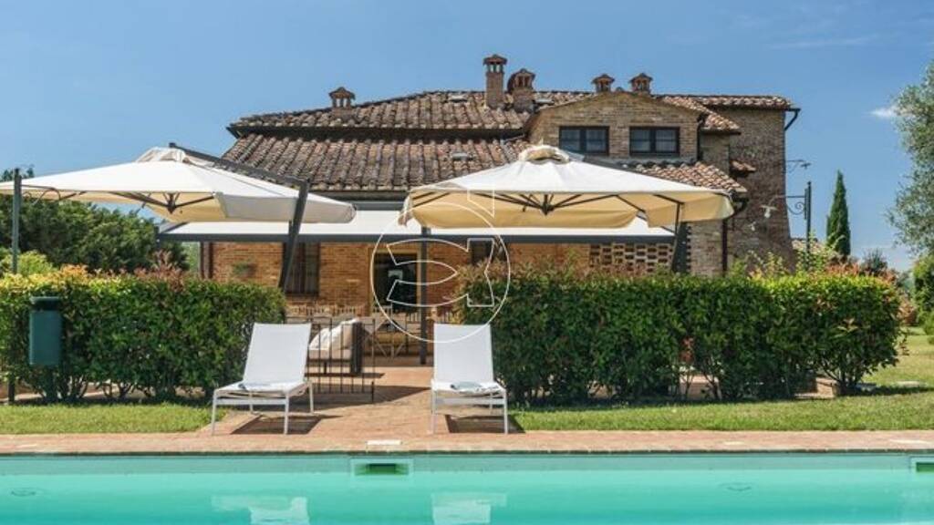 Die Villa ist von einem üppigen 3000 Quadratmeter großen Garten umgeben, inmitten von Olivenbäumen, wo sich der Panorama Pool mit Blick auf die sanften Hügel befindet, von dem aus Siena und Montalcino begutachtet werden kann.