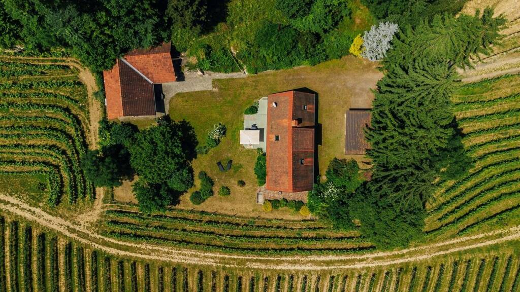 Auf rund 450 Höhenmetern an der südsteirischen Weinstraße gelegen, bietet diese Liegenschaft einen atemberaubenden Blick über sanfte Hügel und beeindruckende Weinreben - eine malerische Kulisse, die dazu einlädt, einfach zu bleiben.