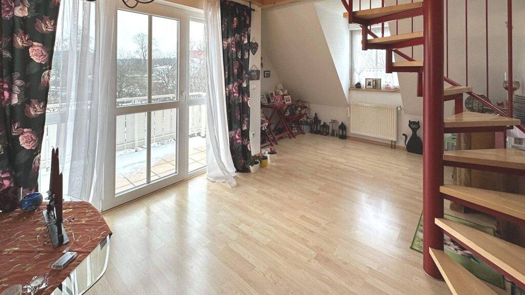 Der gemütliche Wohnbereich öffnet sich zur überdachten Loggia - hell, einladend und ideal als Rückzugsort. Eine Wendeltreppe führt in die Galerie mit über 30 m², die flexibel nutzbar ist: Homeoffice, Hobbyraum oder separater Schlaf-/Wohnbereich - hier ist alles möglich.