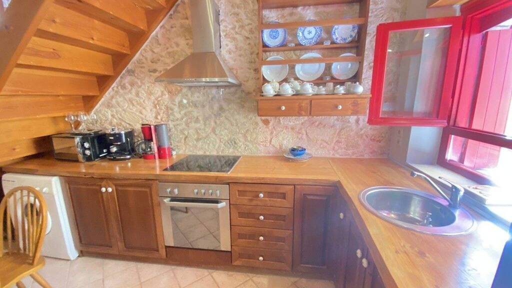 Vollständig renoviertes 97 m² Reihenhaus in Vamos, Kreta – möbliert, mit zwei Ebenen, Balkon, Loft und modernem Komfort Dieses vollständig renovierte Reihenhaus mit 97 m² Wohnfläche befindet sich im Herzen von Vamos, einem der etabliertesten Dörfer der Region Apokoronas, nur 30 km von Chania entfernt. Es bietet einen praktischen und gut durchdachten Grundriss auf zwei Ebenen und eignet sich ideal für ganzjähriges Wohnen oder als langfristige Mietinvestition. Das Haus wird möbliert und bezugsfertig verkauft. Innenbereich & Layout Im Erdgeschoss befindet sich ein offener Wohn- und Küchenbereich mit hochwertigen Einbaugeräten, ein komplettes Badezimmer sowie ein praktischer Abstellraum. Im Obergeschoss liegt ein Schlafzimmer mit Zugang zu einem großzügigen Balkon, ein zweites Badezimmer sowie ein Loft, das als zusätzlicher Schlafbereich, Büro oder Lounge genutzt werden kann. Ausstattung & Charakter Moderne Ausstattungsmerkmale umfassen: Zentralheizung mit Öl, Klimaanlage, Kamin, elektrischen Boiler und Internetzugang. Gleichzeitig bewahrt das Interieur traditionelle Elemente wie Holzdecken, Holz- und Keramikböden sowie Steindetails, die dem Haus Charakter und Atmosphäre verleihen, ohne auf Funktionalität zu verzichten. Lage & Umgebung Auf einer Höhe von 190 Metern gelegen, bietet Vamos eine gute Infrastruktur: medizinische Versorgung, Banken, Schulen, Cafés, Tavernen und Geschäfte sind alle fußläufig erreichbar. Den Strand von Kalyves erreicht man in nur 8 km, ideal für Baden und kulinarische Erlebnisse am Meer. Dieses Haus ist eine hervorragende Wahl für Käufer, die das Dorfleben genießen möchten, aber dennoch einfache Anbindung an lokale Dienstleistungen und die Attraktionen Kretas wünschen.