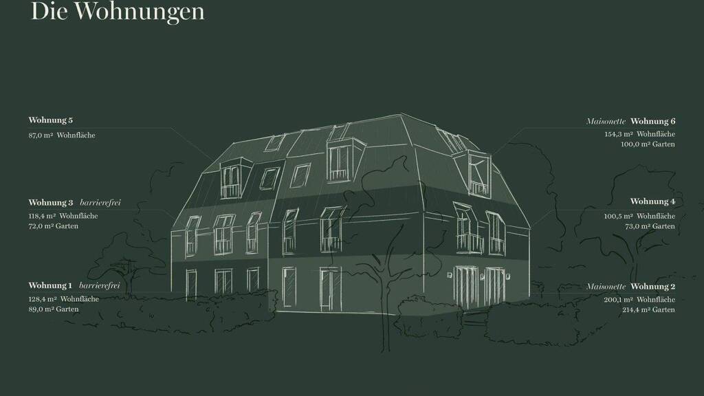Es entstehen sechs Wohnungen auf drei Etagen, davon: