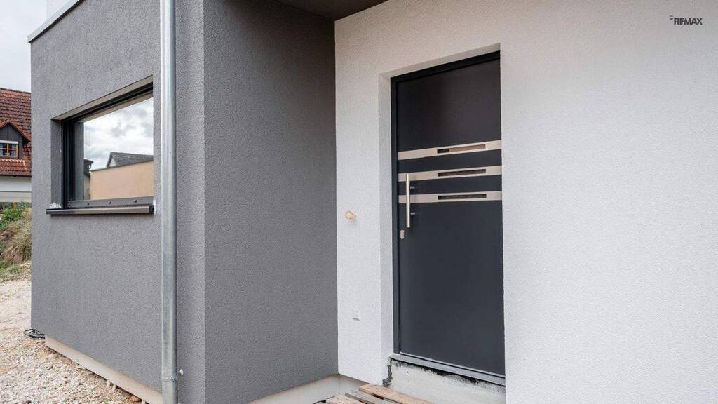 Großflächige Fenster, eine Raumhöhe von ca. 2,80 m sowie bodentiefe Verglasungen sorgen für lichtdurchflutete Wohnbereiche und ein offenes Raumgefühl. Die Architektur überzeugt durch klare Linien, eine moderne Akzentfassade und einen überdachten Eingangsbereich mit Flachdach.