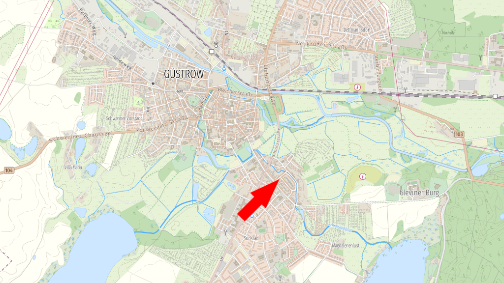 Die Barlachstadt Güstrow ist mit ca. 30.000 Einwohnern die größte Kreisstadt im näheren Umfeld der ca. 44 km entfernten Hansestadt Rostock. Insbesondere die historische Altstadt beeindruckt durch Fachwerkhäuser, Backsteingotik, den Bürgerhäusern und den extravaganten Renaissancebauten. Als ehemalige Residenzstadt blickt Güstrow auf eine lange Geschichte zurück und ist heute nicht nur ein kulturelles Zentrum, sondern hat sich in den letzten Jahrzehnten auch als umweltgerechte und familienfreundliche Stadt mit hoher Lebensqualität entwickelt. Die Stadtvilla befindet sich im beliebten Stadtteil Plauer Vorstadt, einer ruhigen Wohngegend mit guter Infrastruktur. ÖPNV, Schulen, Kitas und Restaurants sind fußläufig erreichbar. Einkaufsmöglichkeiten liegen in kurzer Fahrdistanz und sind bequem mit dem Fahrrad oder mit dem Auto zu erreichen. Der Bahnhof Güstrow ist nur wenige Minuten entfernt und bietet direkte Verbindungen nach Rostock, Schwerin und Berlin. Über die Bundesstraßen B?104 und B?103 sowie die nahegelegene A?19 und A?20 sind Städte wie Rostock, Hamburg und Berlin gut angebunden. Der Flughafen Rostock-Laage ist nur ca. 17?km entfernt. Die Umgebung bietet zahlreiche Möglichkeiten zur Freizeitgestaltung. Der nahegelegene Inselsee, der Wildpark-MV sowie zahlreiche Rad- und Wanderwege laden zur Erholung im Grünen ein. Die Wohnlage überzeugt durch Ruhe, gute Erreichbarkeit und ein angenehmes Umfeld für alle Altersgruppen.