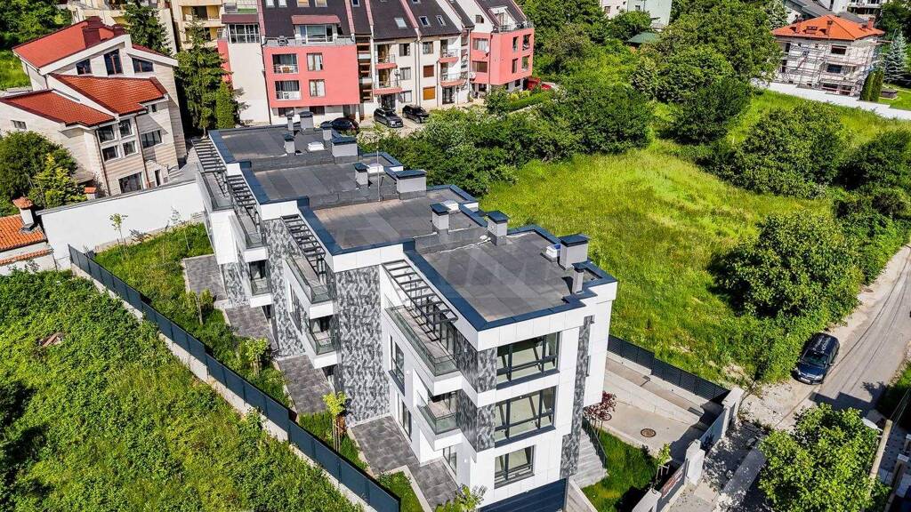 Der Komplex besteht aus vier Gebäuden, die als Reihenbebauung konzipiert sind und eine moderne architektonische Vision sowie hochwertige Materialien und Techniken für den Bau aufweisen. Jedes Haus besteht aus drei oberirdischen Ebenen und einer Kellerebene mit einer Doppelgarage mit Einzelgaragentor und Lagerraum. Die Häuser verfügen über funktionale und geräumige Zimmer mit raumhohen Fenstern, die viel natürliches Licht und Blick auf Vitosha bieten. Sie verfügen außerdem über eine Veranda und der Zugang ist kontrolliert, um Komfort und Sicherheit zu gewährleisten.