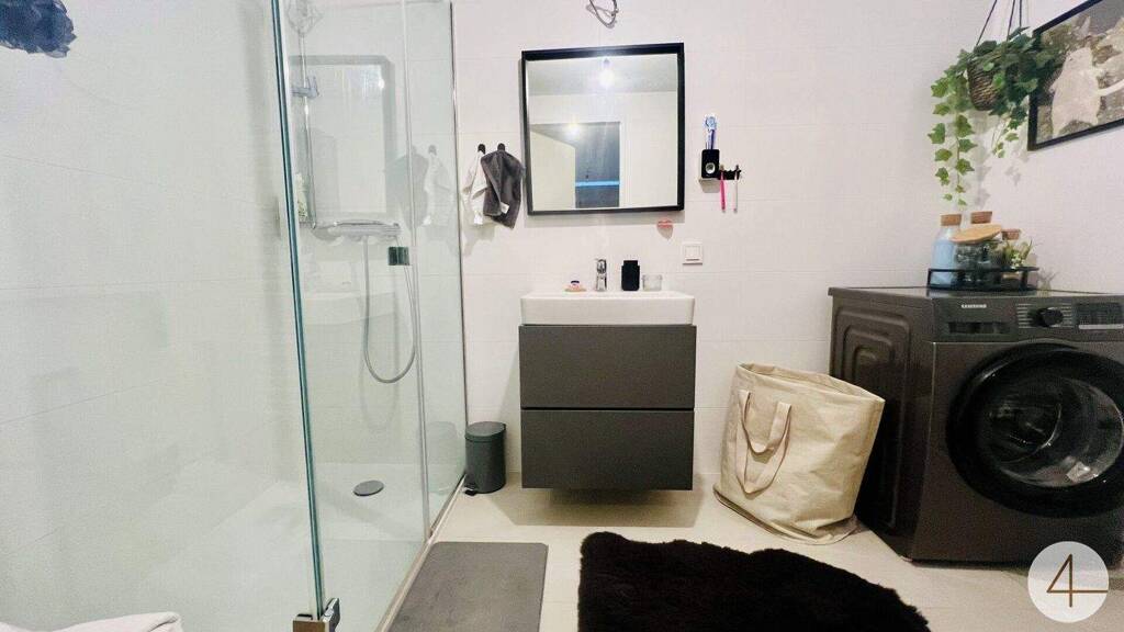 * Badezimmer mit Dusche und Waschmaschinenanschluss