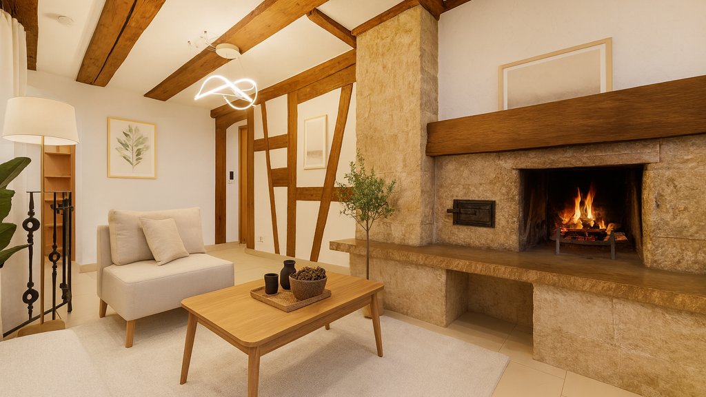 - Historische Details wie Fachwerk, Sichtmauerwerk, tiefe Fensterbänke