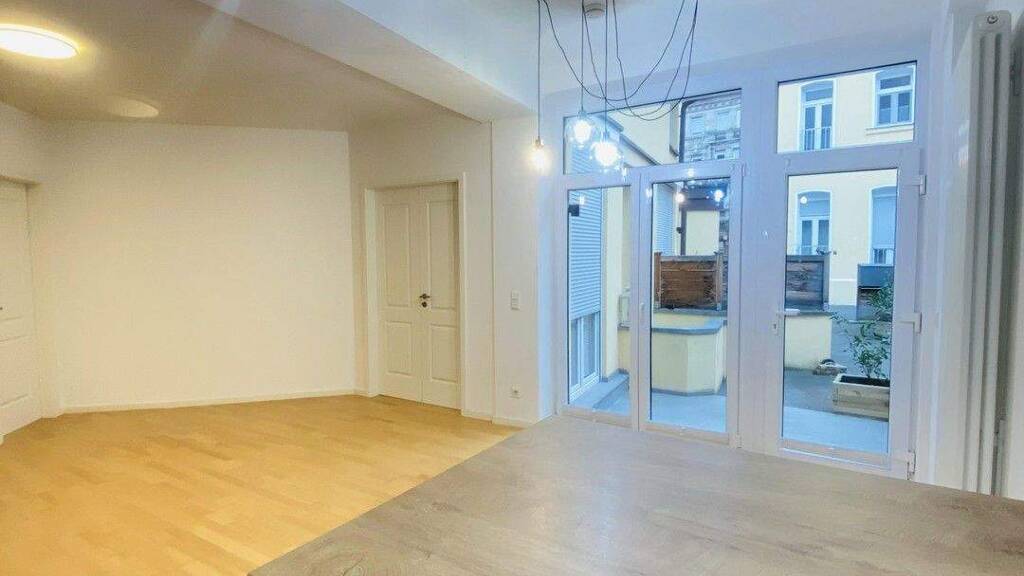 Diese schöne aussergewöhnliche 2 Zimmer Wohnung befindet sich in einem ruhigen Hinterhof direkt bei Friedrich-Ebert Platz in einem kleinen Häuschen. Die schöne Wohnung hat ein Wohnbereich mit integrierte Einbauküche, ein grosses Bad mit Dusche und Badewanne. Beide Zimmer haben bodentiefe Fenster mit elektrischen Rolläden und mit Ausblick auf eigene Terasse. Zum Schlafzimmer gehört auch ein begehbares Kleiderzimmer/Abstellraum, wo sich auch ein Waschmaschinen Anschluss befindet. Ein Kellerabteil befindet sich im Vorderhaus.