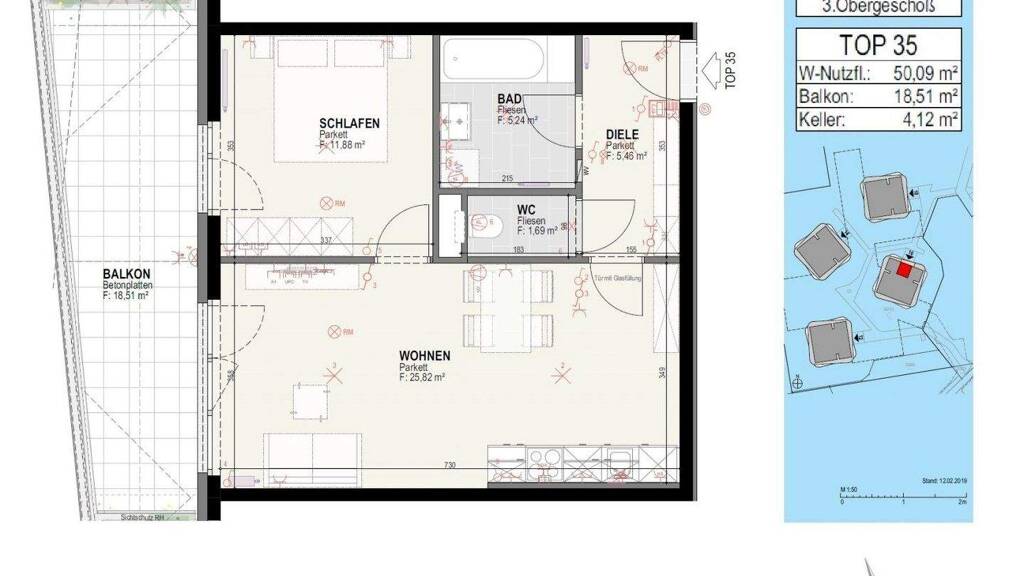 2 Zimmer  •  50,1 m²  •  3. Geschoss  •  frei ab 01.06.2026