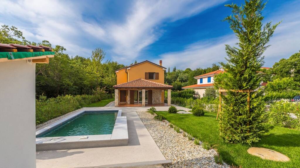 In ruhiger Lage im üppigen Grün von Dobrinje auf der Insel Krk befindet sich dieses charmante Haus mit Swimmingpool, ideal für einen Familienurlaub oder eine luxuriöse Vermietung. Der 1100 m² große Garten bietet absolute Privatsphäre mit einem sorgfältig angelegten Garten, einem Sonnendeck am Pool und einem zusätzlichen Gartenhaus. Das Erdgeschoss verfügt über ein geräumiges Wohnzimmer, das mit der Küche und dem Esszimmer verbunden ist, ein komfortables Schlafzimmer, ein Badezimmer und einen praktischen Abstellraum. Die erste Etage bietet vier weitere Zimmer - ein Hauptschlafzimmer mit eigenem Bad, ein Zimmer mit Zugang zu einem Balkon, ein zusätzliches Schlafzimmer und ein kleineres Zimmer, das sich ideal als Arbeits- oder Kinderzimmer eignet. Auf dieser Etage befindet sich außerdem ein weiteres Badezimmer, das auch einer größeren Familie oder mehreren Gästen umfassenden Komfort bietet. Das Haus unterliegt der Mehrwertsteuer, das heißt, der Käufer zahlt keine Grunderwerbsteuer. Dieses Anwesen bietet Ruhe, Platz und Funktionalität - die perfekte Wahl für alle, die Qualität und Entspannung in einer natürlichen Umgebung suchen.