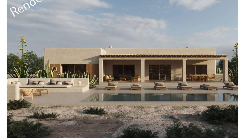 Draußen zeigt die Villa ihre emotionalste Seite: ein unverzichtbarer Pool, elegant und perfekt in das Gelände integriert, wo das Wasser den Himmel reflektiert und die sich verändernden Farben der Insel eine schwebende und nachdenkliche Atmosphäre schaffen. Rund um den Pool befindet sich ein entspannter Bereich von großem Charme, mit Steinsofas, großen, leichten Kissen, natürlichen Holzelementen und Liegelounges, die die harmonische Sommeratmosphäre abrunden und einen idealen Raum zum Entspannen, Lesen oder einfach zum Betrachten der Stille von Formentera bieten und jeden Moment in ein sinnliches Erlebnis verwandeln. Diese Luxusvilla in Es Cap de Barbaria ist eine außergewöhnliche Balance zwischen zeitgenössischer Architektur, authentischen Materialien, völliger Privatsphäre und einer tiefen Verbindung zur Natur: eine exklusive Residenz für alle, die Luxus auf authentische, diskrete und emotionale Weise leben möchten, an einem der prestigeträchtigsten Orte der Balearen.