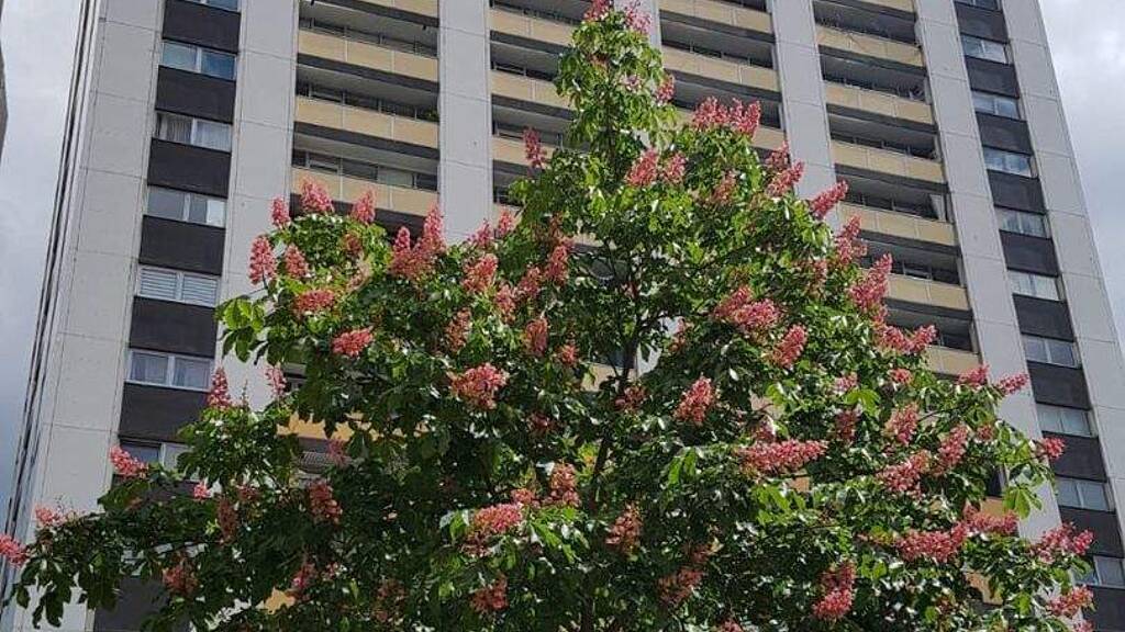 Die Wohnung befindet sich im 16.OG eines grossen Mehrparteienhauses.