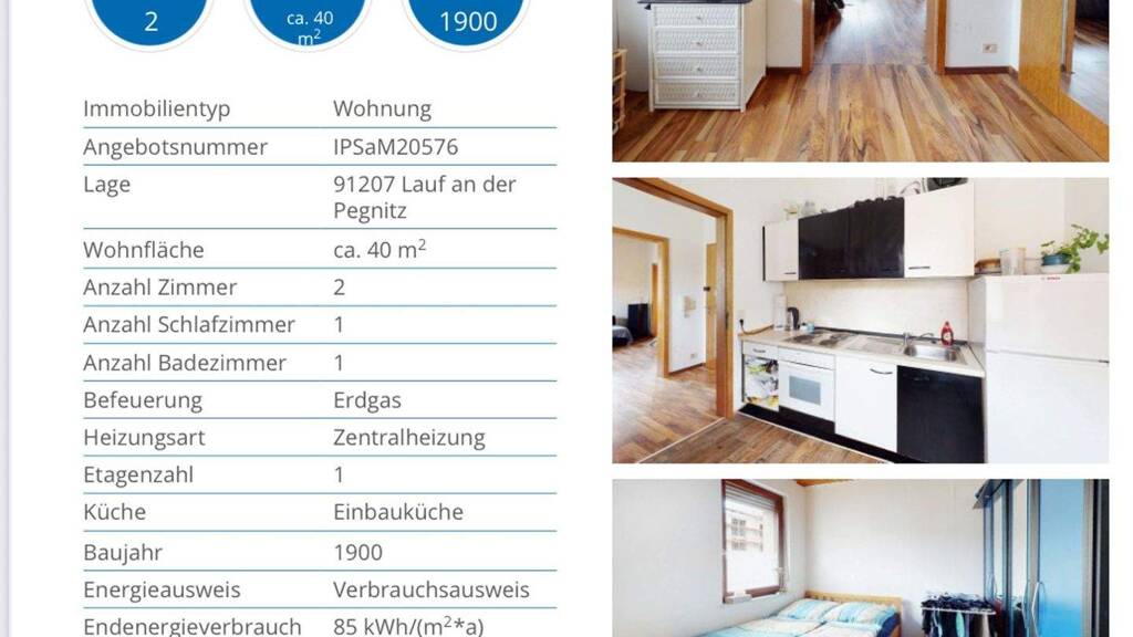 Stichworte Garage vorhanden, Nutzfläche: 40,00 m², Anzahl der Badezimmer: 1