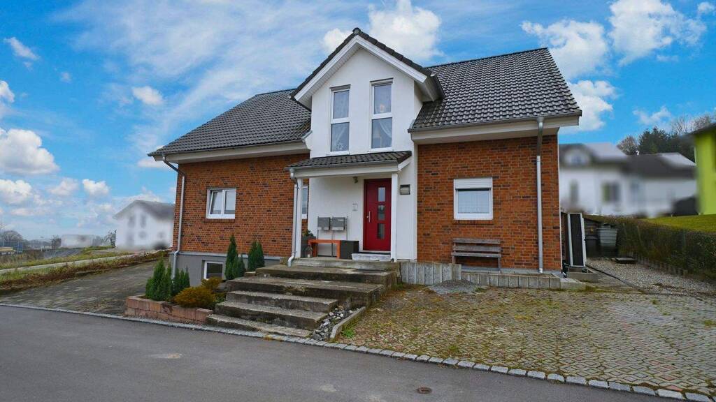 Auf einem sonnigen, 675?m² großen Grundstück gelegen, bietet das im Jahr 2014 erbaute Fertighaus insgesamt rund 221?m² Wohnfläche und überzeugt durch seine ruhige Lage sowie einen gepflegten Außenbereich. Bereits beim Betreten empfängt Sie ein heller, einladender Flur, von dem sowohl die Haupteinheit als auch, über die gemeinsame Treppe, die Einliegerwohnung erreichbar sind.