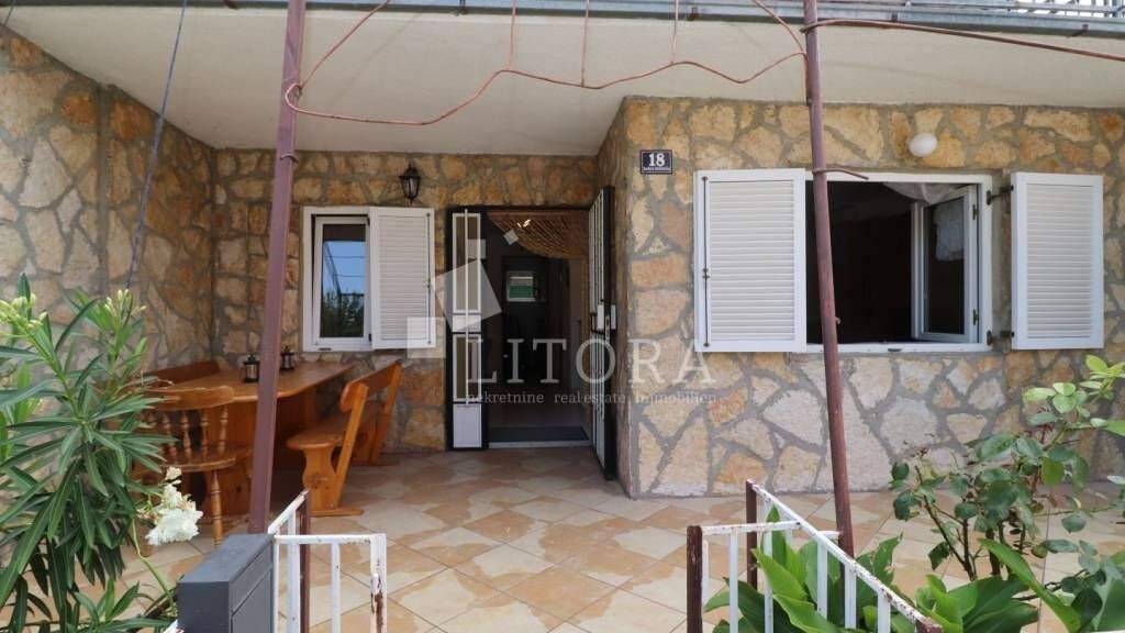 Pirovac - 140 m vom gepflegten Strand, in ruhiger Umgebung. Familienhaus auf zwei Etagen mit zwei Wohneinheiten und Garage, mit einer Gesamtnutzfläche von 128,38 m². Das Haus wurde 1970 erbaut und im Jahr 2000 renoviert, einschließlich einer neuen Fassade. Es besteht aus zwei separaten Apartments sowie einem zusätzlichen Nebengebäude/Hofgarage. Erdgeschoss: überdachte Terrasse, Eingang, Schlafzimmer, Flur, Wohnzimmer mit Küche, Badezimmer. 1. Stock: Eine Außentreppe führt in den ersten Stock, wo sich zwei Schlafzimmer, Flur, Badezimmer, Küche mit Essbereich und Wohnzimmer sowie ein Ausgang zur überdachten Terrasse befinden. Von dort bietet sich ein Meerblick. Das Haus ist freistehend und steht auf einem Grundstück von 160 m². Es verfügt über einen Parkplatz sowie eine Garage von 25,02 m². Die Entfernung zum Strand beträgt nur 140 m, das Ortszentrum ist ca. 700 m entfernt. Die Immobilie verfügt über eine Baugenehmigung, jedoch nicht über eine Nutzungsgenehmigung - der Legalisierungsprozess muss eingeleitet werden.