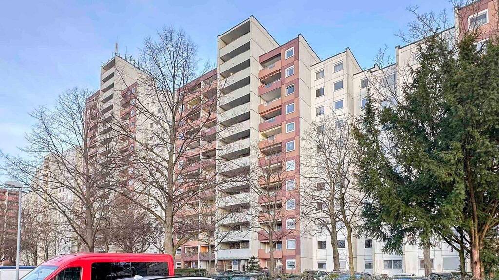Die Wohnung befindet sich im 10. Obergeschoss eines gepflegten Mehrfamilienhauses und ist bequem über den hauseigenen Aufzug erreichbar. Auf ca. 100 m² Wohnfläche erwarten Sie drei gut geschnittene Zimmer, darunter zwei komfortable Schlafzimmer, die vielseitige Nutzungsmöglichkeiten bieten - ob als Kinder-, Arbeits- oder Gästezimmer.