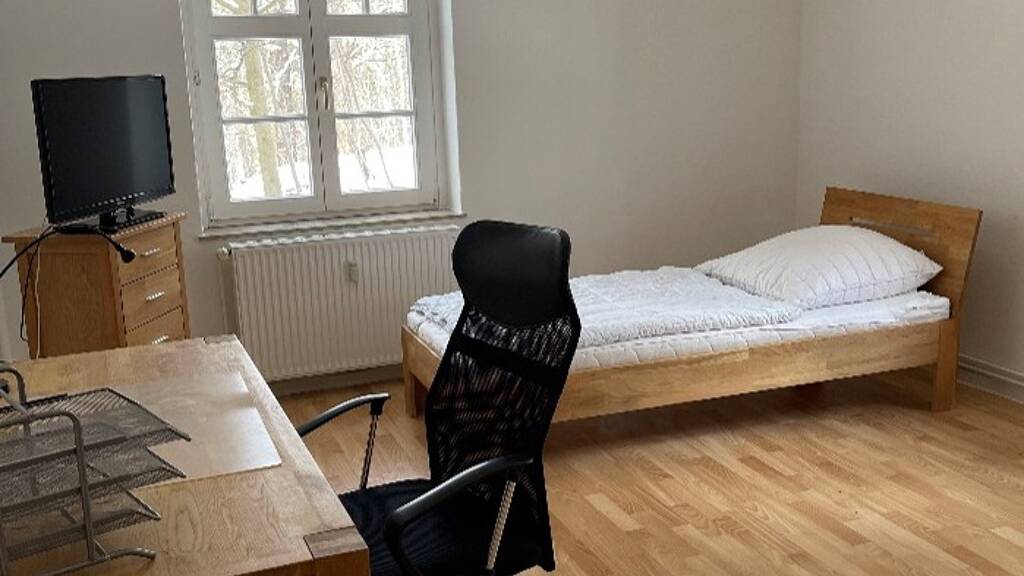 Einige Zimmer sind unmöbliert und einige sind möbliert. Diese möblierten Zimmer sind komplett möbliert mit großem Schreibtisch, Bürodrehstuhl, Bett mit Lattenrost und Matratze, Kommode und Kleiderschrank.