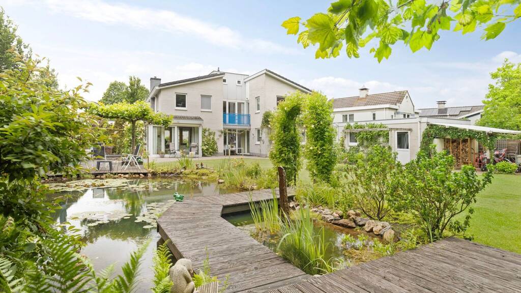 free living with nature reserve beekvliet and the berkel around the corner. this spacious, postmodernist villa was built under architecture in 1998 and was given a symmetrical layout, with playful hoods and colorful accents.
