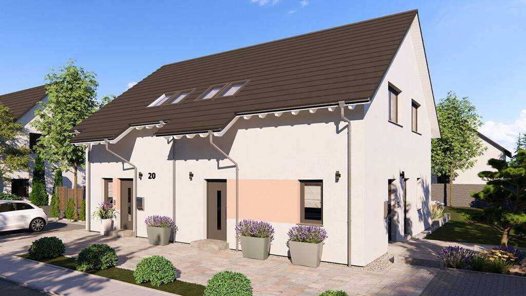 Dieses projektiert gefertigte Zweifamilienhaus bietet auf 184,16 m² Wohnfläche zwei vollständig voneinander getrennte Wohneinheiten mit jeweils eigenem Hauseingang. Im Erdgeschoss entstehen zwei unabhängige Wohnungen: die Hauptwohnung mit Wohn-/Essbereich, Schlafzimmer, Küche und Gäste-WC sowie eine separate Einliegerwohnung mit eigenem Wohn-/Essbereich, Schlafzimmer, Küche, Bad und Hauswirtschaftsraum. Im Obergeschoss gehört die gesamte Etage zur Hauptwohnung - mit drei weiteren Schlafzimmern, Ankleide, Arbeitszimmer und einem großzügigen Badezimmer. Ob Mehrgenerationenwohnen, Mieteinnahme zur Entlastung der Finanzierung oder einfach Platz für eine große Familie - dieses Konzept passt sich Ihrem Leben an, nicht umgekehrt. Das 850 m² große Grundstück gibt Ihnen den Freiraum dazu. Das Haus erfüllt serienmäßig den KfW-Effizienzhaus-55-Standard für nachhaltiges, energieeffizientes Wohnen. Der angegebene Preis versteht sich inklusive Grundstück in der Ausbaustufe ohne Trockenausbau.